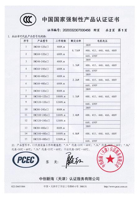 IMC60-100 3C證書
