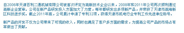 天津百利二通機(jī)械有限公司科技工作持續(xù)發(fā)展